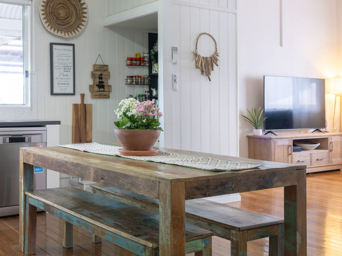 Embrace a life of comfort and ease in the tastefully renovated early 1920s farmhouse, boasting 3-4 generously proportioned bedrooms and 2 modern bathrooms. The inviting country-style kitchen and undercover entertaining area provide a perfect backdrop for hosting gatherings or simply unwinding amidst nature's serenity. Further enhancing the property's allure is a portable self-contained flat, complete with its own bathroom, kitchen, and deck for enjoying the gentle 'River Breeze'.